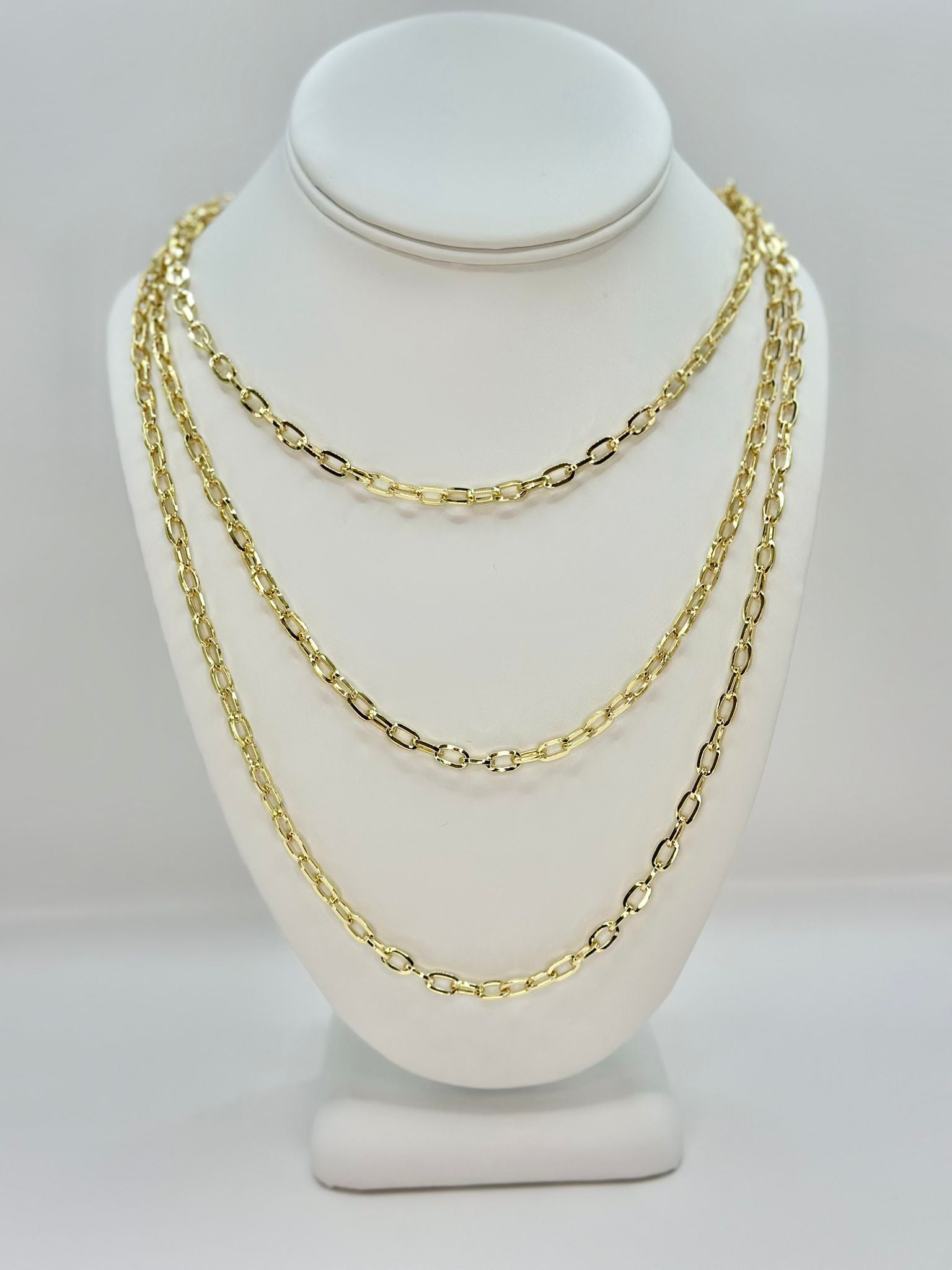Collar 3 en 1 compuesto por cadenas de eslabones medianos en forma de cascada, totalmente en dorado. Cada nivel tiene una caída elegante que aporta dimensión y movimiento al look. Su diseño versátil y sofisticado permite lucirlo tanto junto con otros collares, ya le aporta brillo y sofistiques, como también puedes lucirlo solo, ideal para elevar cualquier outfit con un toque moderno y chic.